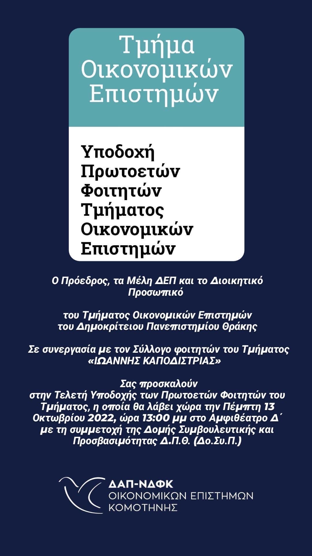 Υποδοχή Πρωτοετών Φοιτητών από το Σύλλογο Φοιτητών «Ιωάννης Καποδίστριας» του Τμήματος Οικονομικών Επιστημών